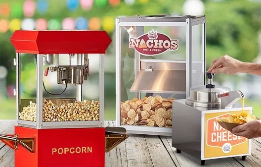 Concession equipment includes tools and appliances used to prepare and serve popular snacks at events like fairs and theaters. Examples include popcorn machines, cotton candy makers, and hot dog grills. Designed for portability and efficiency, this equipment helps vendors quickly serve large crowds while ensuring food quality and safety.